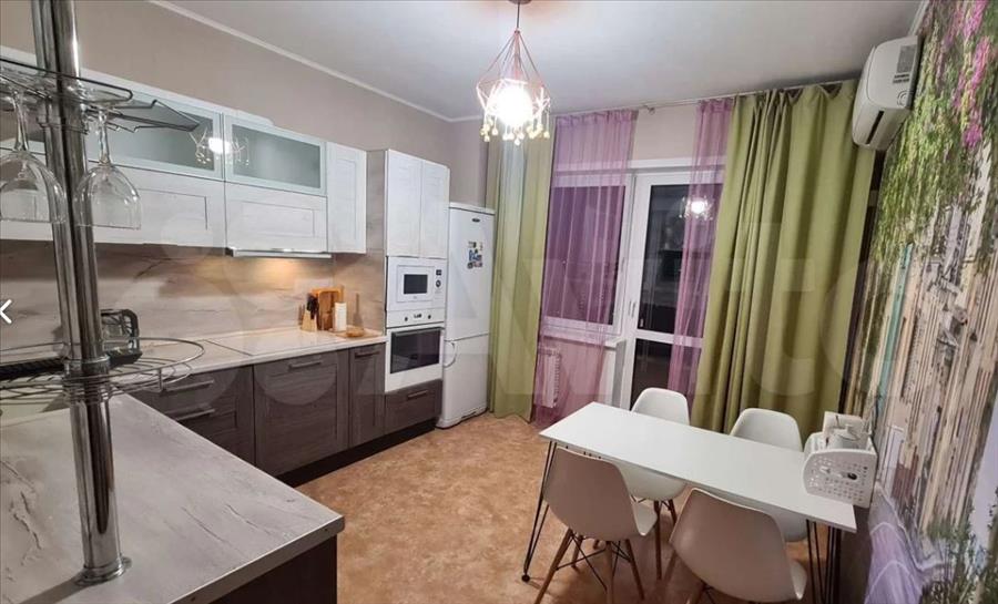 В квартире есть все необходимое для проживания: 🔸️В комнате: встроенный с зеркалом шкаф-стенли во всю ширину комнаты, кровать 140×200,шторы блэкаут светонепроницаемые. 🔹️В ванной комнате: стены и пол в кафеле(с подогревом),большая угловая ванна,бойлер для нагрева воды,удобная система хранения. 🔸️В кухне: гарнитур, обеденный стол со стульями. *Бытовая техника: кондиционер,холодильник, эл. чайник, стиральная машина автомат,телевизор. *Встроенная бытовая техника: варочная индукционная панель,вытяжка, духовой шкаф, микроволновая печь и посудомоечная машинка.Свет и вода оплачиваются дополнительно по фактическому потреблению. Заезжай и живи! Ежемесячный платёж 35 т.р.+ вода и свет по счетчику. Залог за квартиру в размере 35 т.р. ОПЛАЧИВАЕТСЯ СРАЗУ и возвращается при выезде.
