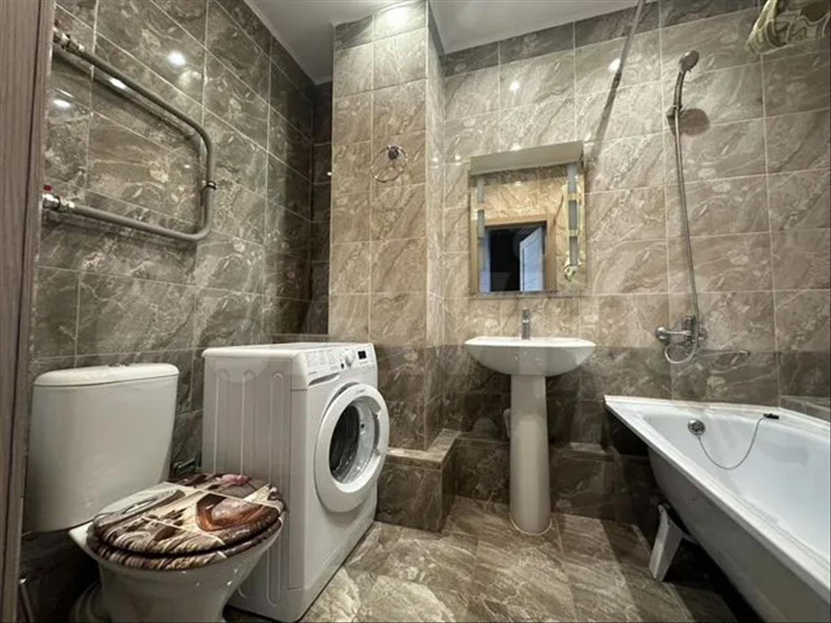1 комнатная квартира, (отдельно кухня, 12кв , из кухни можно сделать вторую комнату идеально для двух студентов)есть холодильник,плита,стерильная машина, чайник, посуда. И все что на фото. Только русским.